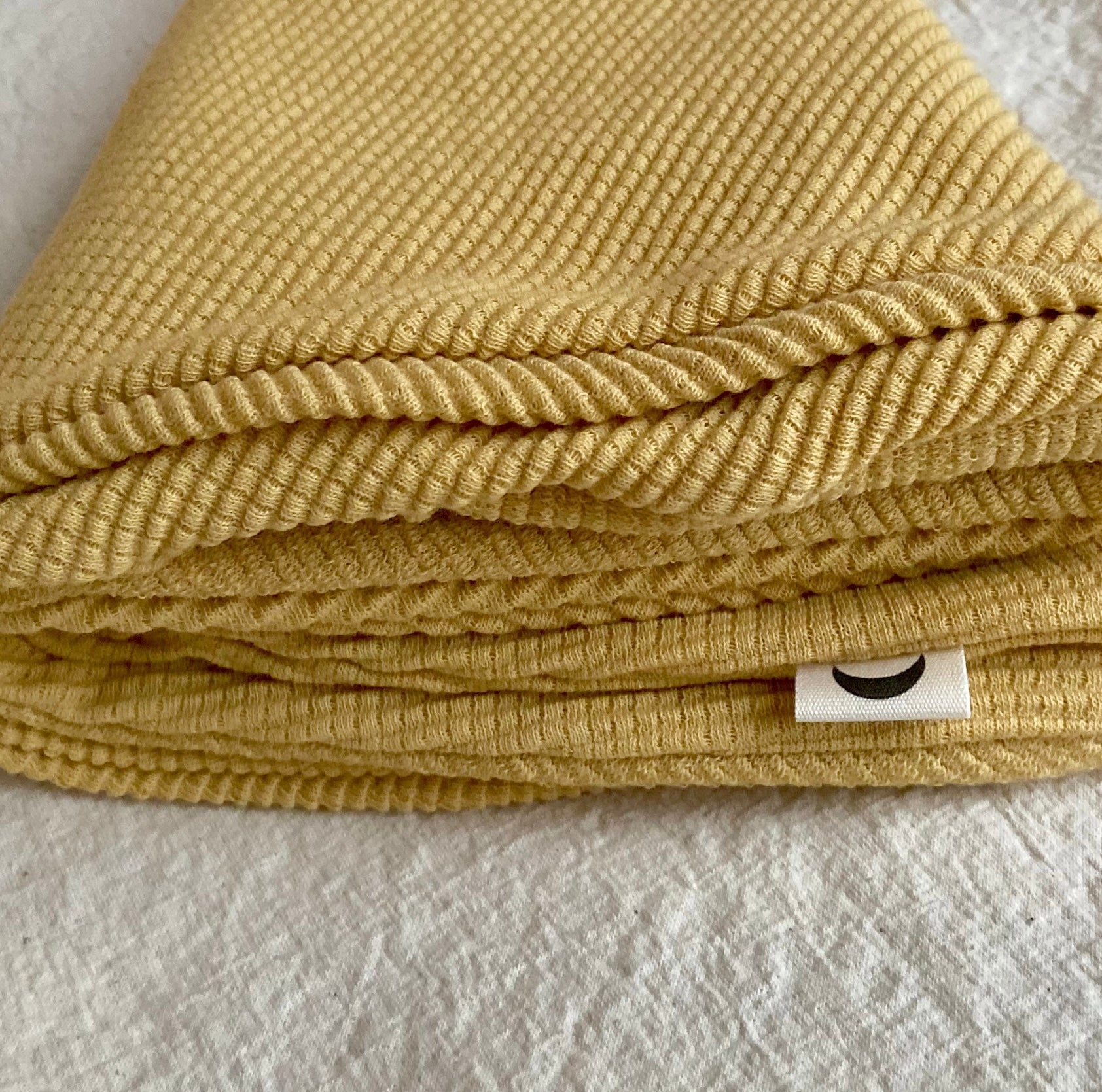 Moonwomb waffle cover collection. Earthy sun soaked shades with deliciously soft textured organic cotton. Mushroom, Sedona, Oatmeal, Indigo, Raisin, and sunflower.