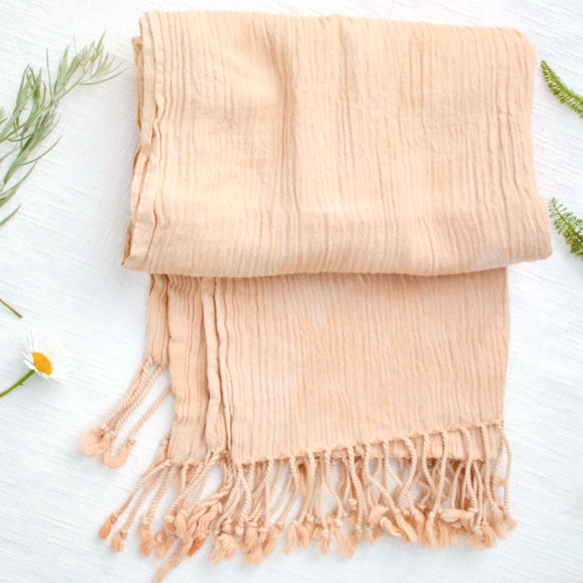 Understated neutral scarf made of the finest organic cotton and linen. Ethically handwoven by skilled third generation weavers. Wear it for walks on the beach, take it on your baby moon travels to paradise. Wrap it around you for photo shoots, take it to yoga, use it when baby comes for a lightweight sun cover while enjoying nature.